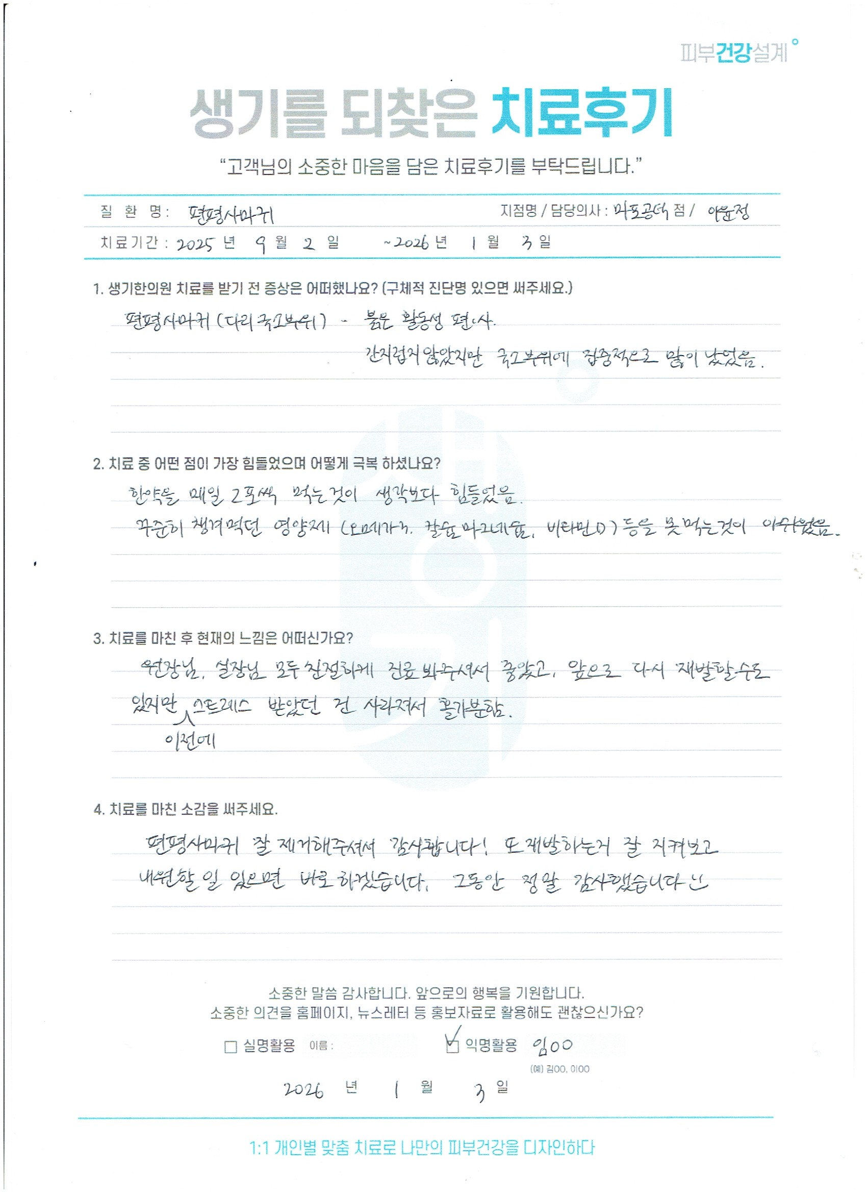생기한의원과 함께하신 생생한 자필 및 영상 후기를 소개합니다.